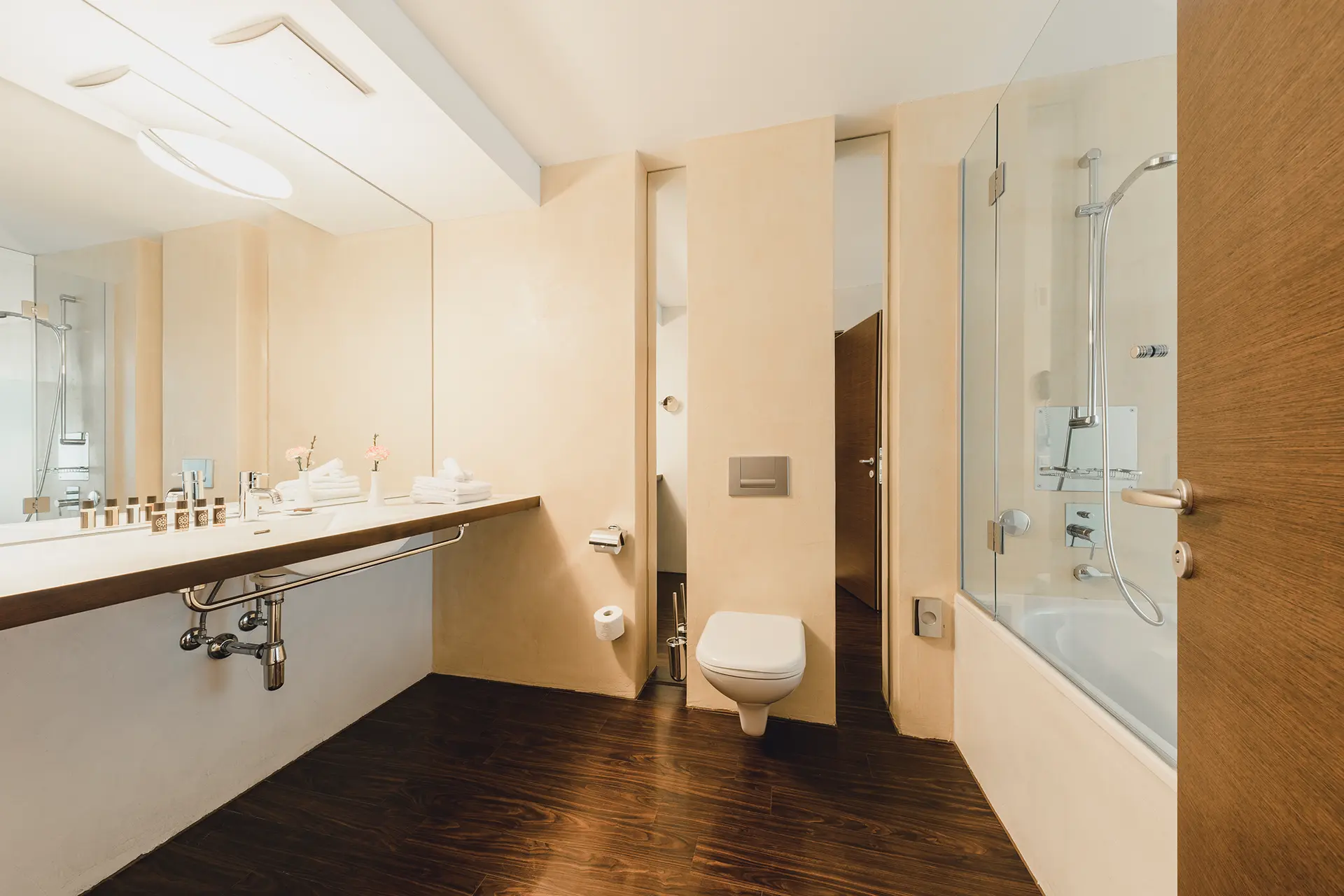 Geniessen Sie erholsamen Schlaf in unseren hochwertigen Betten, wahlweise als grosszügiges Kingsize-Bett (200 x 200 cm) oder zwei bequeme Einzelbetten (jeweils 100 x 200 cm). Diese Zimmer bieten Ihnen einen wunderbaren Blick auf die lebendige Innenstadt und die majestätischen Schweizer Alpen. Sie sind ideal für Kurztrips oder als komfortabler Zwischenstopp auf Ihrer Durchreise und repräsentieren unser kostengünstigeres Segment, ohne an Gemütlichkeit einzubüssen.